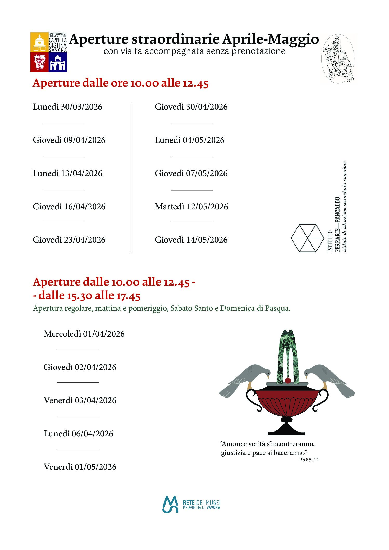 La visita offre la suggestione di arte e spiritualità insieme, scoprendo proprio qui il legame con la storia avvincente della città di Savona dai fasti del Rinascimento con i papi savonesi Sisto IV e Giulio II.
